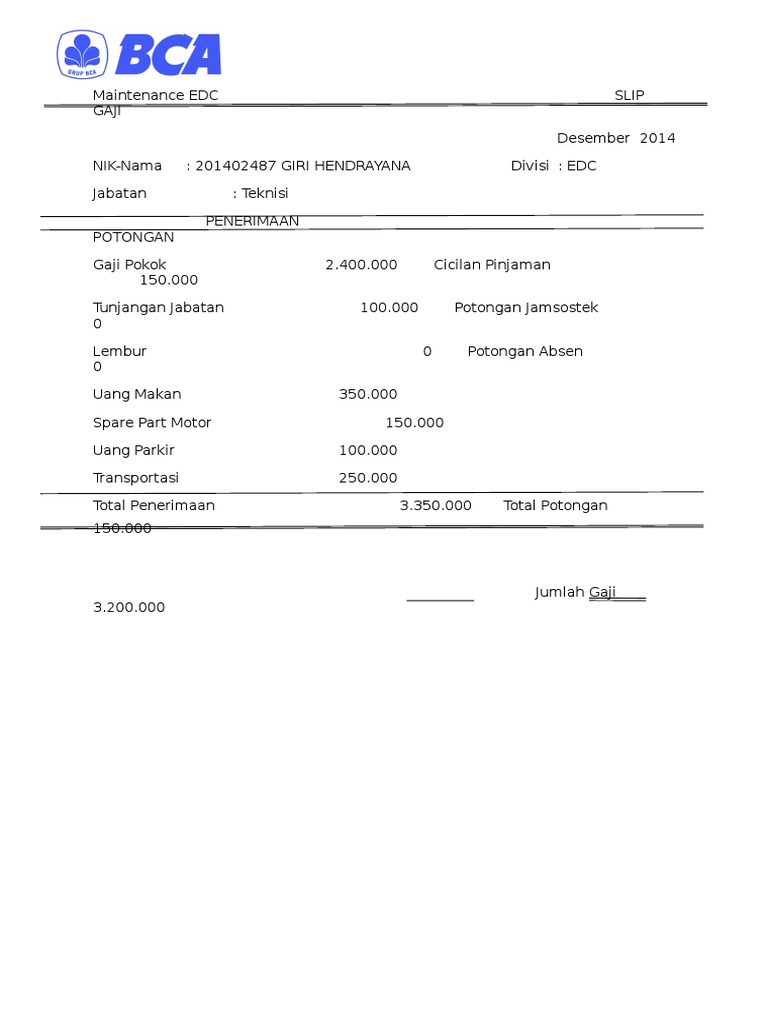 Slip Gaji Asli from imgv2-2-f.scribdassets.com Dengan menerima slip gaji resmi dapatkan contoh slip gaji lengkap dengan cara membuat dan file nya di artikel ini. Hal ini sesuai dengan pasal 17 ayat 2 peraturan pemerintah (pp) nomor 78 tahun 2015 yang berbunyi, pengusaha wajib memberikan bukti pembayaran upah yang memuat. Isi dari slip gaji pada umumnya berupa catatan yang berupa kumpulan dari setiap sektor tugas,terdiri dari penghasilan pokok, bonus, uang makan, lewat waktu, tunjangan, jamsostek, uang transport intinya dalam membuat slip gaji lebih lengkap dan jelas lebih baik. Slip gaji tidak menggunakan tulisan tangan, sesuai dengan prosedur yang berlaku dan dilakukan secara profesional, papar agus. Slip gaji yang menjadi satu perkara penting dalam urusan pinjaman bank, pertukaran kerja, dan sebagainya menjadikan ianya satu keperluan untuk mengakses dan mendapatkannya dengan mudah. Bagi seorang karyawan slip gaji. Karyawan di bagian payroll sendiri jelas membutuhkan format serta tata cara membuat slip gaji, sesuai standar yang seharusnya. Aplikasi slip gaji merupakan salah satu inovasi baru dalam pengaturan pendistribusian gaji.